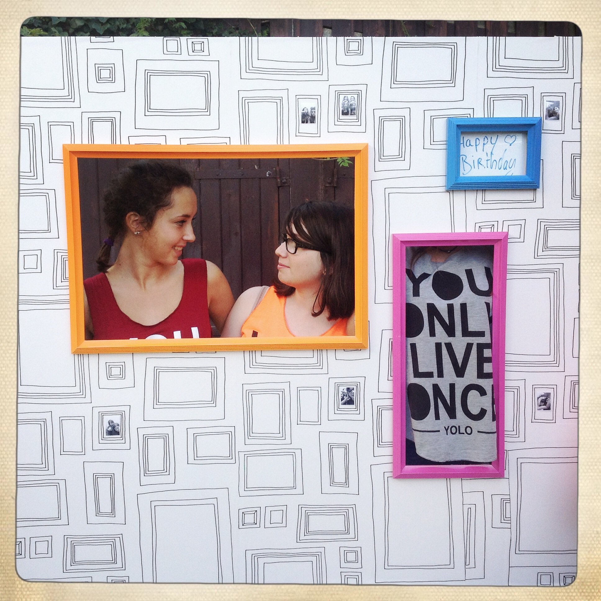 LE PLUS : récupérer le grand cadre et y mettre un patchwork des photos !!