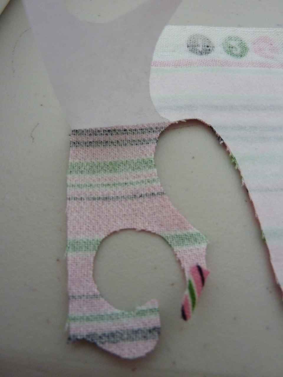 L’adhésif lorsqu’il est encore sur du papier, avant le transfert sur tissus. On peut le couper comme on veut. Ici, c’est une toute petite bande :