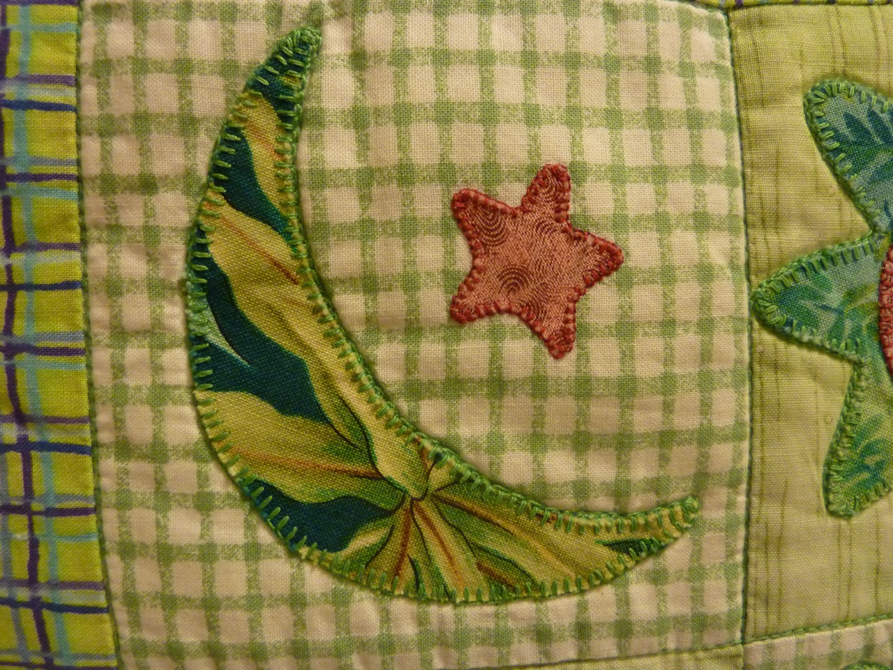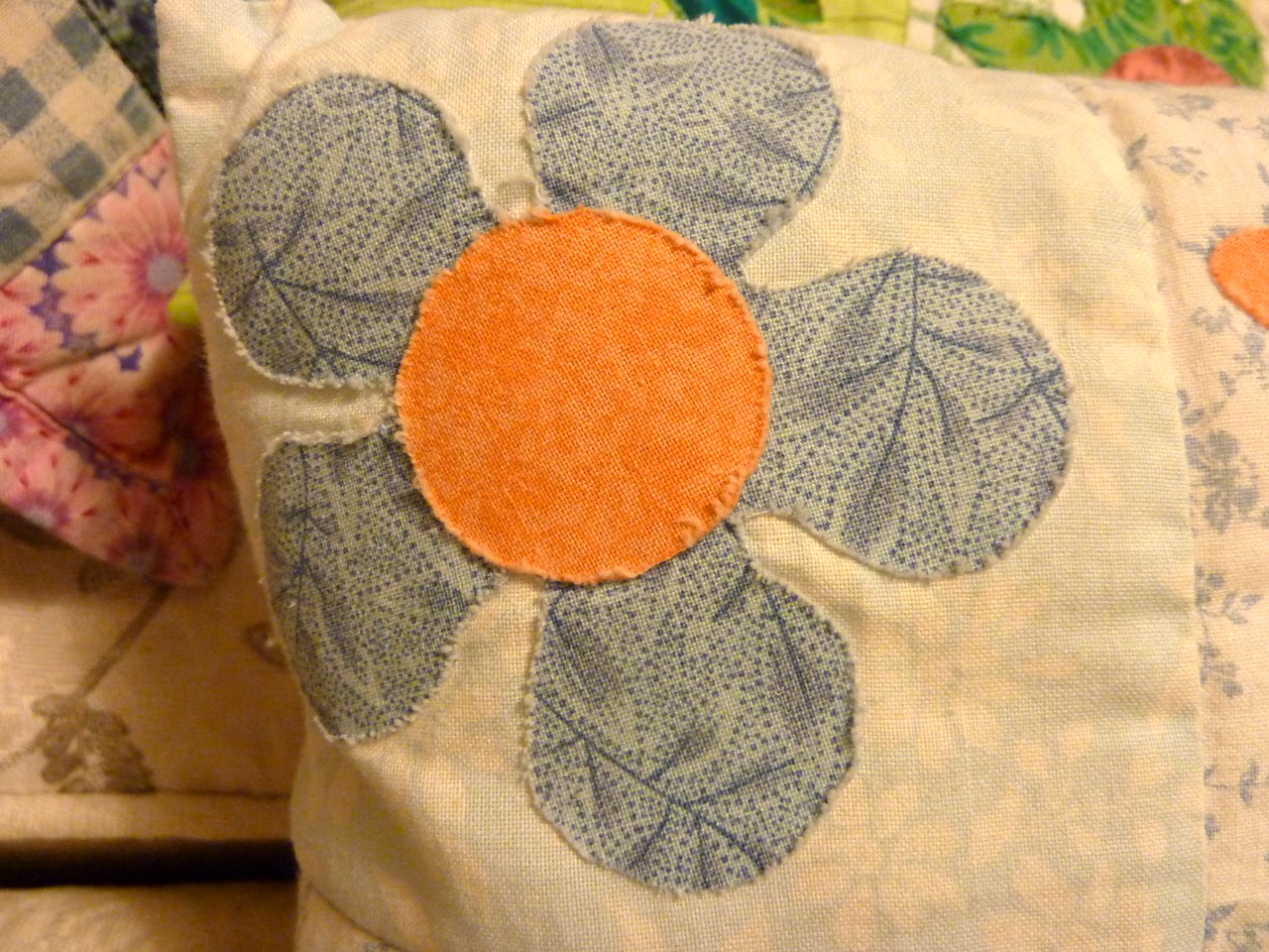 Remarque: Idéalement, il faudrait faire une couture en zig-zag pour stabiliser les bords des appliqués, ce que j’ai fait pour les grands coussins. Ainsi, l’appliqué reste stable et le coussin se lave sans problème. Pour les petits coussins, il n’était pas question que je fasse cela, car sinon, les filles n’auraient pas eu leur coussin à temps. J’avais un peu peur qu’à la longue le coussin se détruise, mais 6 ans après, ils sont toujours nickel. Et puis, on ne les lave pas aussi souvent, vu qu’ils ont plus un rôle décoratif qu’autre chose. Le seul réel danger pour ces coussins, c’est les petits frères et petites soeurs… Avec eux, tout peut arriver!