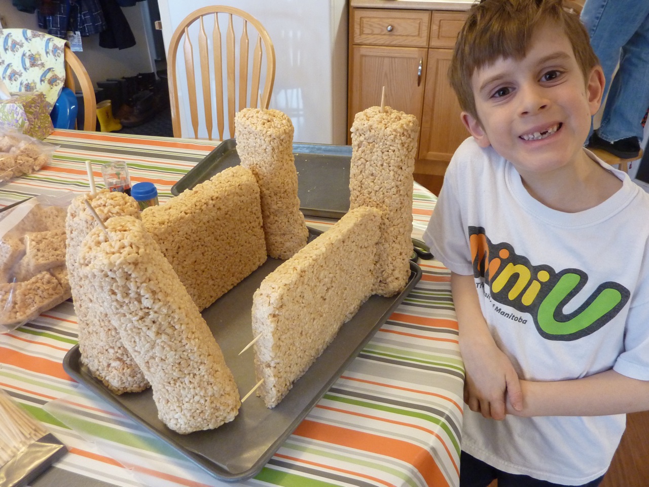 Le montage du château avec des pics à brochette en bois :