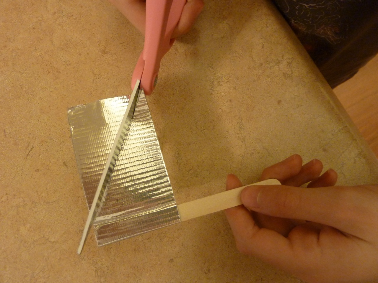 2. Faire le drapeau en repliant un bout de duct tape autour de l’un des bâtons de glace, puis en coupant la bande ainsi obtenue en un drapeau de la forme voulue. Décorez le drapeau si vous voulez.