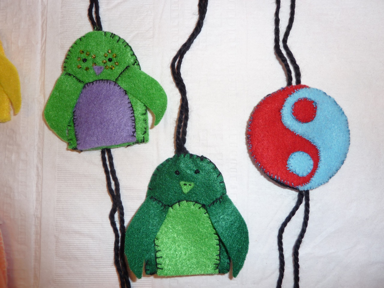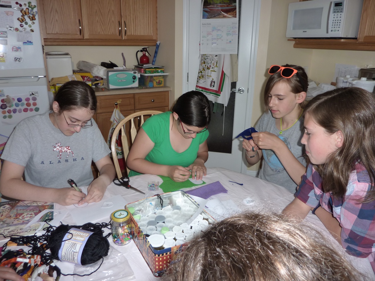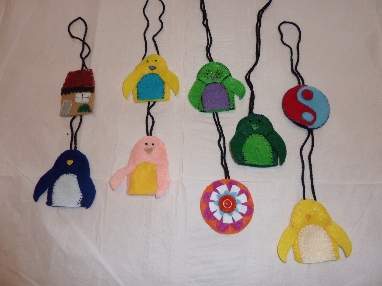 Pour les 14 ans de Nadège, nous avons fait de caches-clé en feutrine. J’ai donné une feuille d’instruction aux filles, le matériel dont elles avaient besoin et elles se sont débrouillé. Certaines ont amélioré les modèles proposés, d’autre ont fait leur propre modèle. J’ai juste du leur montrer comment faire le point de feston (http://www.trucsetdeco.com/couture/doudou-point-feston.html). Le résultat était super mignon.