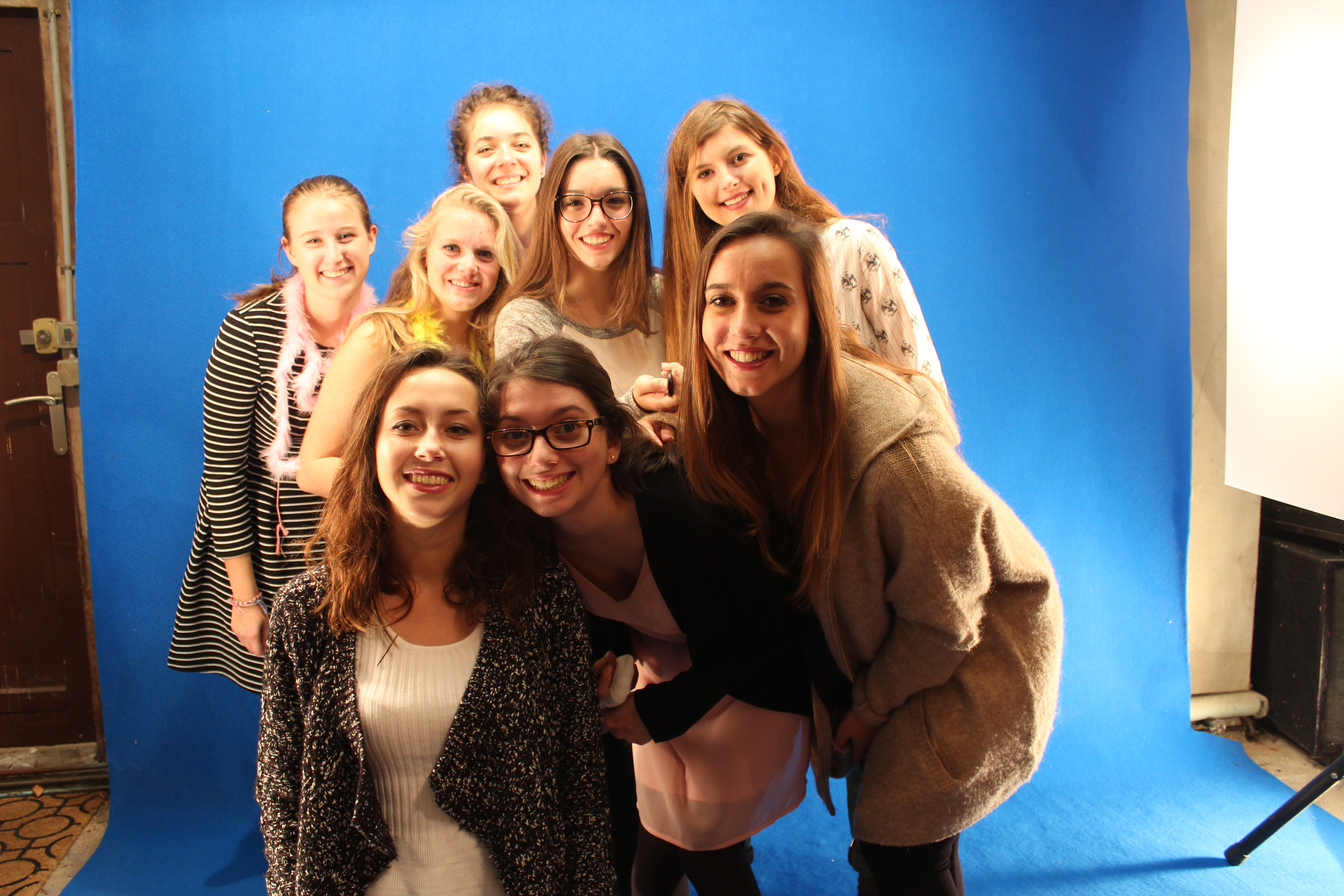 Avec le logiciel GIMP, on supprime la couleur bleue et on la rend transparente (pour cela on trouve des tutoriels simples sur youtube). Le principe de GIMP, c’est de travailler avec des calques : l’image finale sera une superposition de plusieurs calques : sur un calque il y aura les filles, sur un autre la couleur de fond, sur un autre encore un motif ou un message, etc…