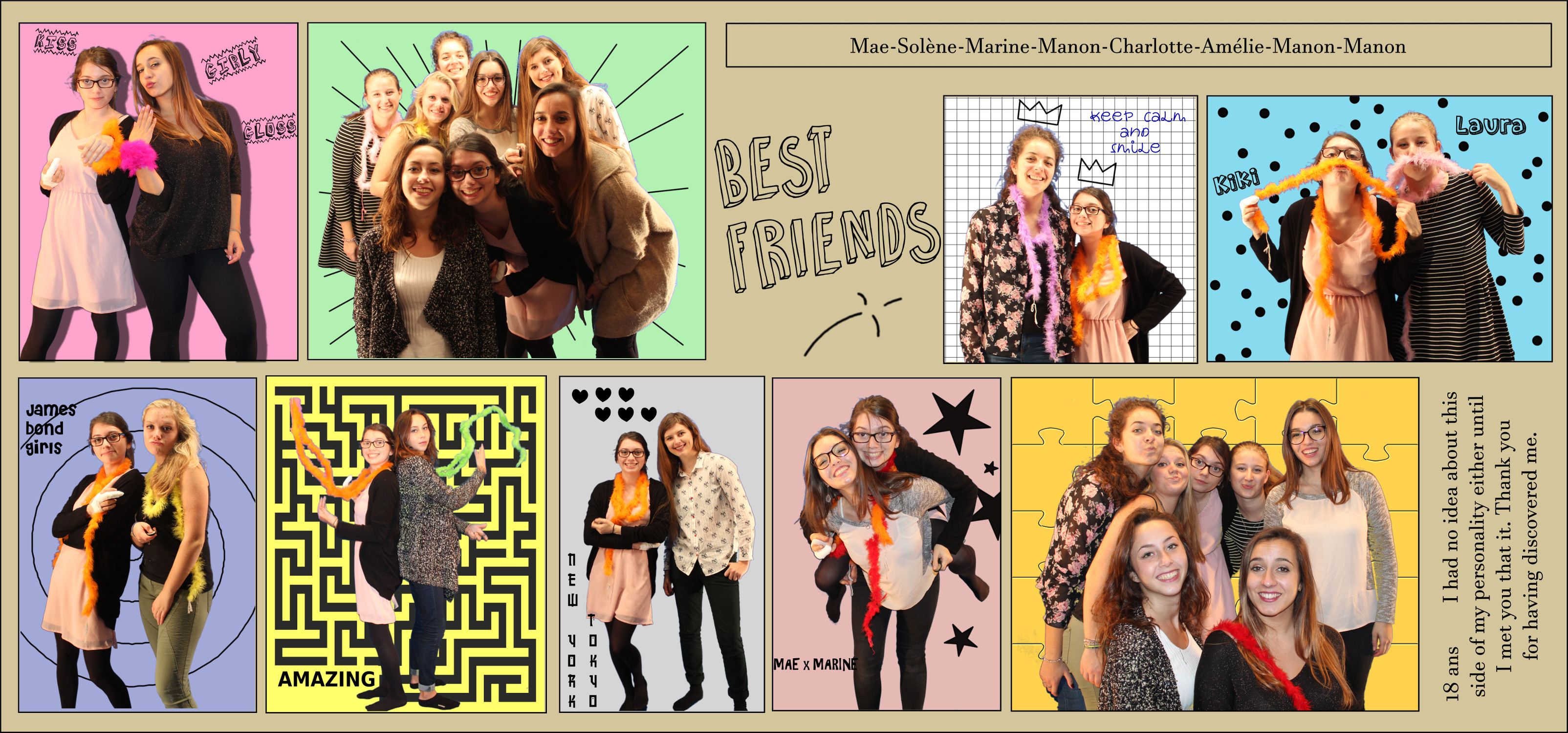 J’ai travaillé 9 photos de cette manière, deux photos de groupe et 7 photos où elles n’étaient que deux, ce qui laisse plus de place pour les messages et motifs.