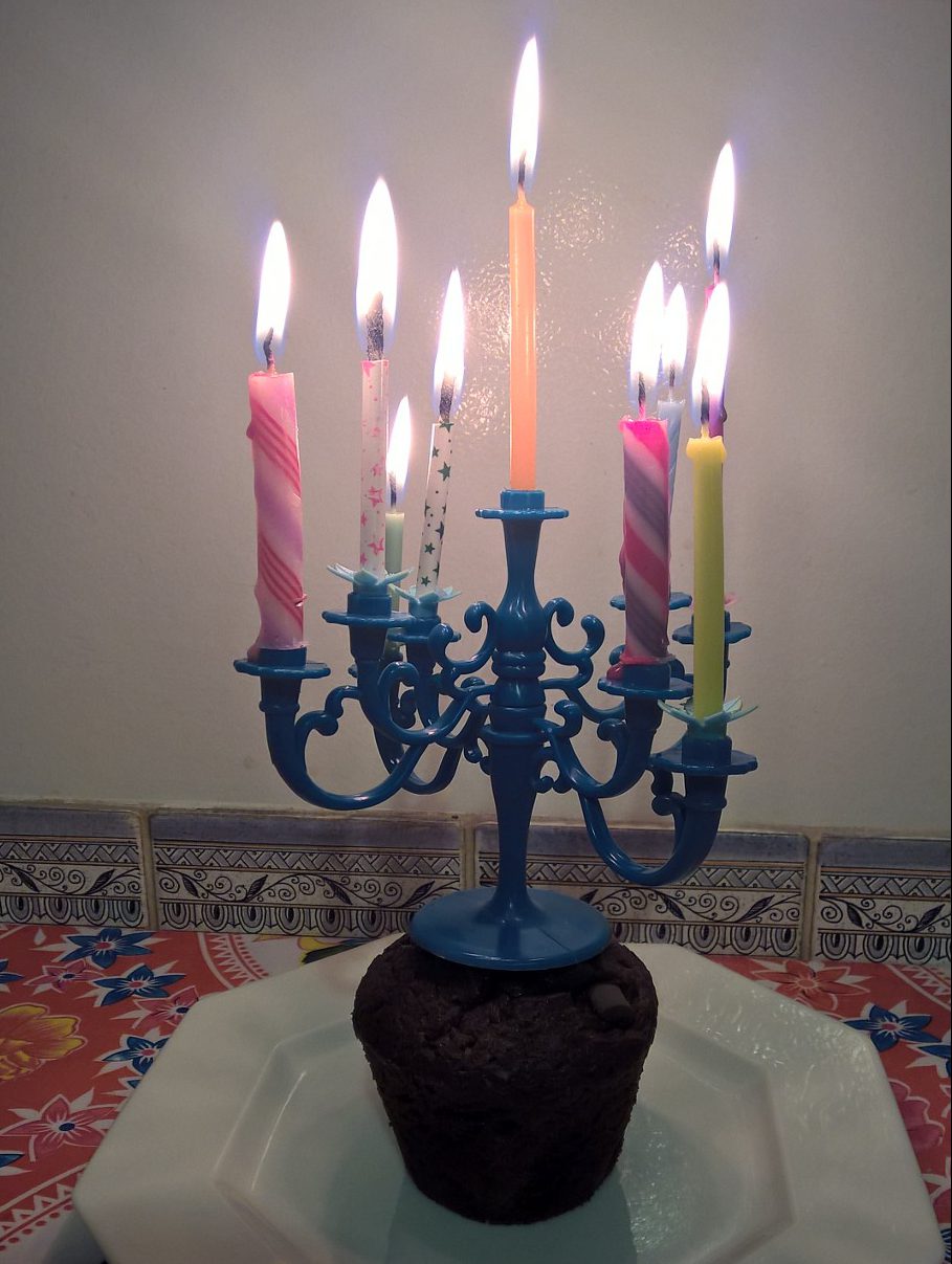 Acheté à Casa, mais je l’ai vu dans d’autres magasins (Tiger par exemple), ce candélabre pour gâteau me permet de recycler toutes les vieilles bougies d’anniversaire ! Je ne mets que des bougies dépareillées, et même les plus petits morceaux de bougies trouvent leur place !
